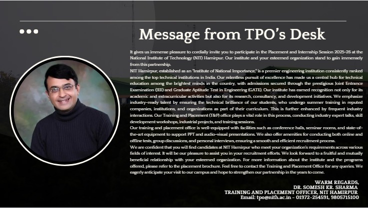 National Career Service (NCS) portal is a new initiative by the Ministry of Labour and Employment, Government of India. It is a common platform that brings together stakeholders like Job Seekers, Employers, Counselors, Local Service Providers, and Trainers to facilitate convergence of information and link job seekers with jobs. The NCS portal is free-to-use and has a hassle-free registration process for students. As per the directions of the competent authority, all students passing out from NIT Hamirpur are recommended to register on the portal via the following link so that they have a one-stop shop for career-related services.